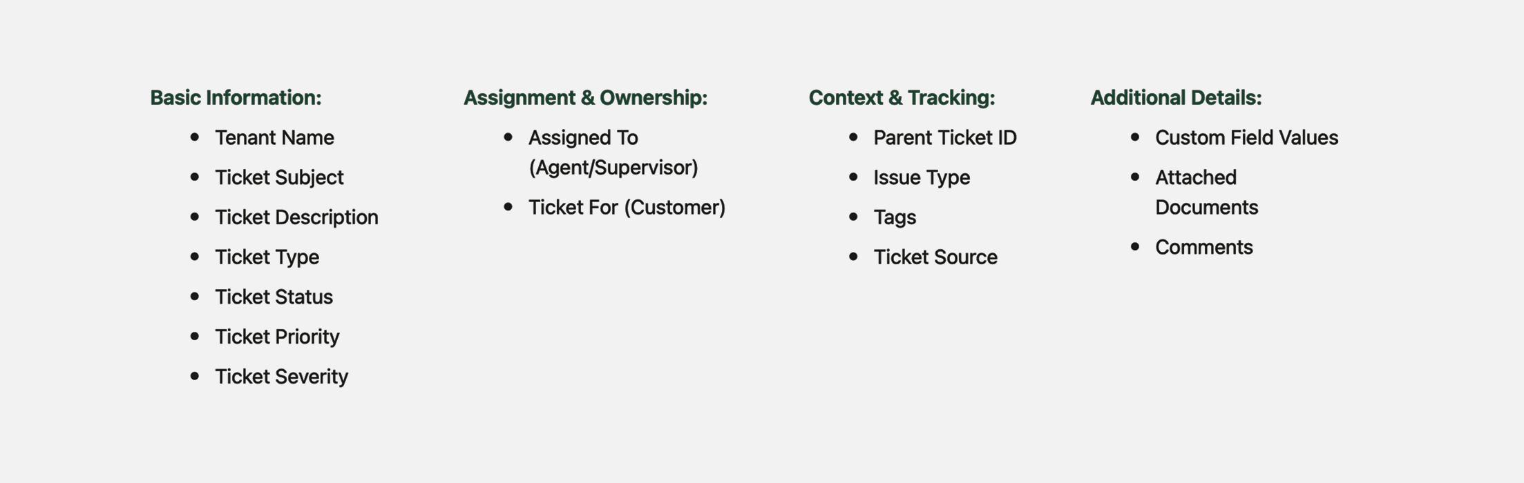 Core Ticket Fields: I familiarized myself with critical fields required for efficient ticket handling: